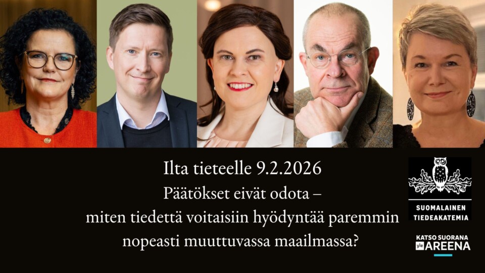 Suomalaisen Tiedeakatemian Ilta tieteelle -tilaisuus järjestettiin maanantaina 8.12. Tilaisuus on katsottavissa tallenteena.