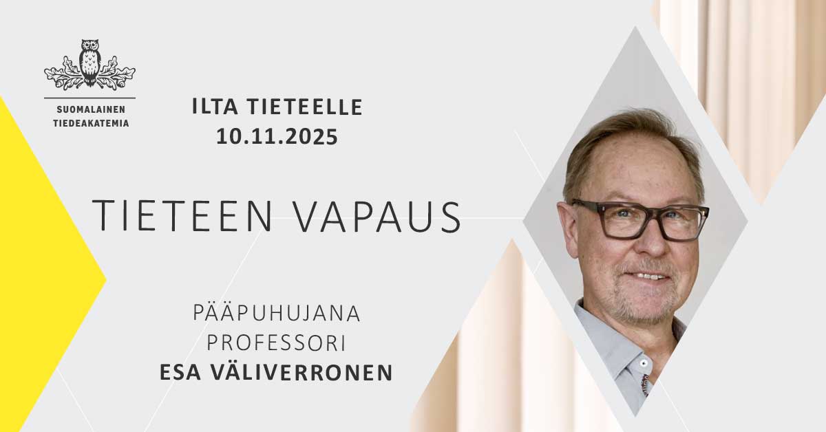 Tiedeakatemian illat tarjoavat yleistajuisia kurkistuksia ajankohtaiseen tieteelliseen tutkimukseen sekä yhteiskunnallisiin kysymyksiin. Tapahtumat ovat avoimia kaikille tieteestä kiinnostuneille. Tapahtumissamme noudatetaan turvallisemman tilan periaatteita (avautuu PDF-tiedostona).