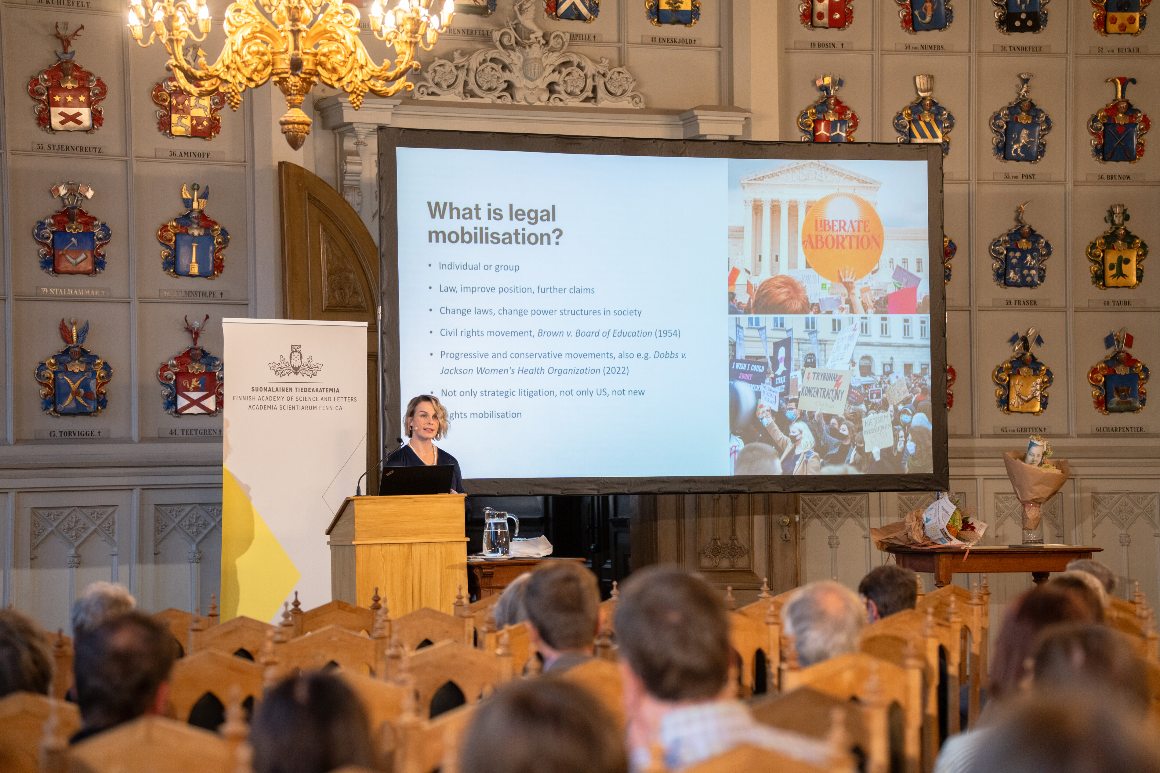 Suomalaisen Tiedeakatemian Ilta tieteelle -tilaisuus järjestettiin maanantaina 20.10. Ritarihuoneella Helsingissä. Illan pääpuhujana oli apulaisprofessori Daniela Alaattinoglu, joka avasi, miten oikeus voi toimia välineenä vallan haastamisessa ja ihmisoikeuksien vahvistamisessa.