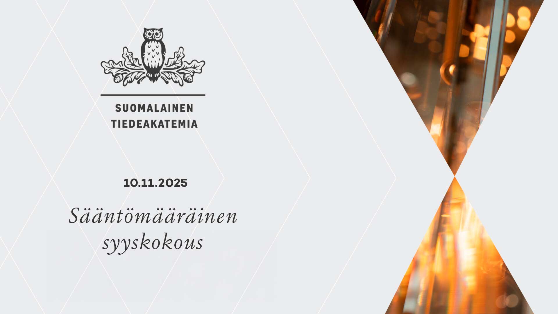 Suomalainen Tiedeakatemia ry:n vuoden 2025 sääntömääräinen syyskokous pidetään Tiedeakatemian tiloissa Mariankadulla marraskuun Ilta tieteelle -tilaisuuden jälkeen. Kokousmateriaali jaetaan jäsenille syyskokouksen alussa.