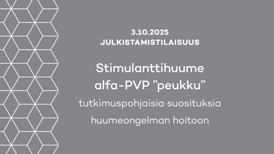 Julkistamistilaisuus 3.10.2025: Miten vastata alfa-PVP:n eli ”peukun” aiheuttamiin haasteisiin? Tutkimuspohjaisia suosituksia huumeongelman hoitoon