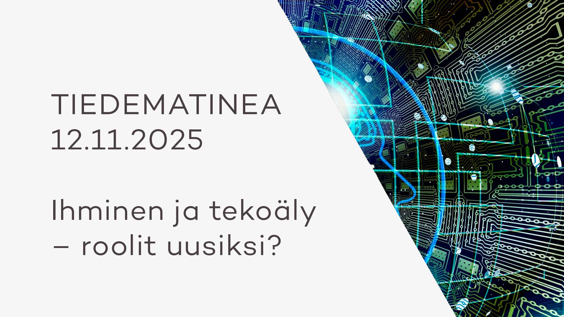 Marraskuun Tiedematineassa tarkastellaan tekoälyn mahdollisuuksia ja rajoja – millaiseksi ihmisen ja tekoälyn suhde tulevaisuudessa muotoutuu? Onko tekoälystä ammattilaiseksi vai ainoastaan työkaluksi?