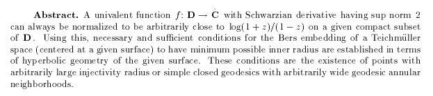Velling, John A.: Degeneration of quasicircles: inner and outer radii of Teichmüller spaces, pp. 191-202