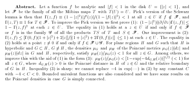 Yamashita, Shinji: The Pick version of the Schwarz lemma and comparison of the Poincaré densities, pp. 291-322.