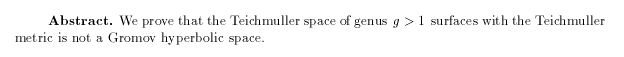 Masur, Howard A., and Michael Wolf: Teichmüller space is not Gromov hyperbolic, pp. 259-267.