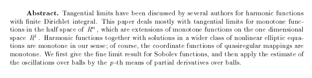Mizuta, Yoshihiro: Tangential limits of monotone Sobolev functions, pp. 315-326.