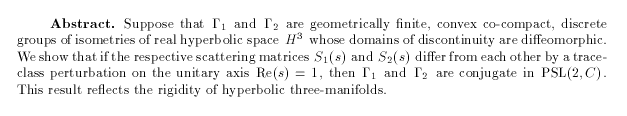 Perry, Peter A.: A trace-class rigidity theorem for Kleinian groups, pp. 251-257.