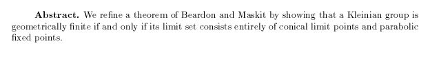 Bishop, Christopher J.: On a theorem of Beardon and Maskit, pp. 383-388.