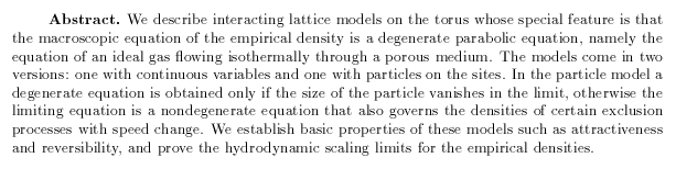 Ekhaus, Michael, and Timo Seppäläinen: Stochastic dynamics macroscopically governed by the porous medium equation for isothermal flow, pp. 309-352.