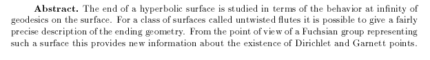 Haas, Andrew: Dirichlet points, Garnett points, and infinite ends of hyperbolic surfaces I, pp. 3-29.