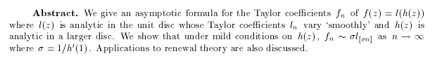Hilberdink, Titus: On the Taylor coefficients of the composition of two analytic functions, pp. 189-204.