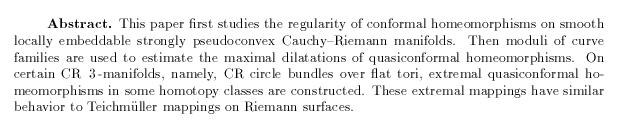 Tang, Puqi: Regularity and extremality of quasiconformal homeomorphisms on CR 3-manifolds, pp. 289-308.