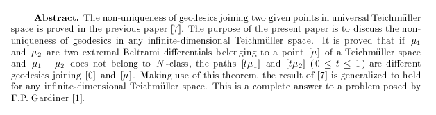 Zhong, Li: Non-uniqueness of geodesics in infinite-dimensional Teichmüller spaces (II), pp. 355-367