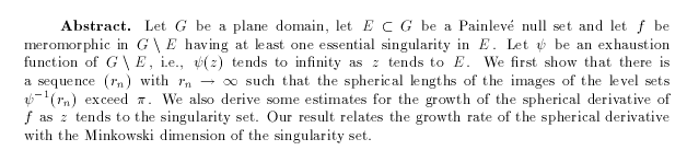 Järvi, Pentti: On the behavior of meromorphic functions around some nonisolated singularities, pp. 367-374.