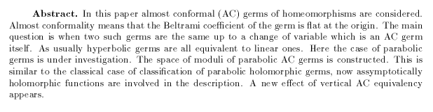 Balogh, Z., and A. Volberg: Normalization of almost conformal parabolic germs, pp. 109-121.