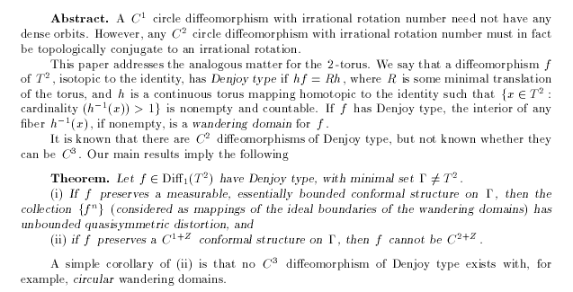 Norton, Alec, and Dennis Sullivan: Wandering domains and invariant conformal structures for mappings of the 2-torus, pp. 51-68.